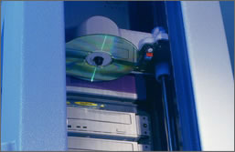 Wenn der Roboterarm die CD zum Drucken aus der Brennerschublade entnimmt, erkennt der optische Sensor anhand der „Printmarke“ die Lage der CD, richtet diese entsprechend aus und legt sie anschließend in die Druckerschublade. Die zusätzlichen Informationen können jetzt an die dafür vorgesehene Stelle gedruckt werden. Mehr >>